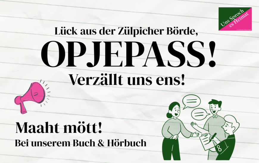 Im Rahmen unseres LEADER-Projekts „Uns Sproch es Heimat“ setzen wir unsere Reihe der „Jängelche durch …“ – Spaziergänge op Platt fort. Ziel ist es, den Dialekt lebendig zu halten und zugleich Orte, Geschichten und Menschen der LEADER-Region Zülpicher Börde näher...
